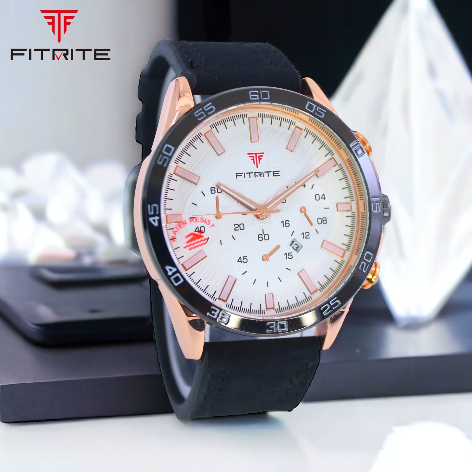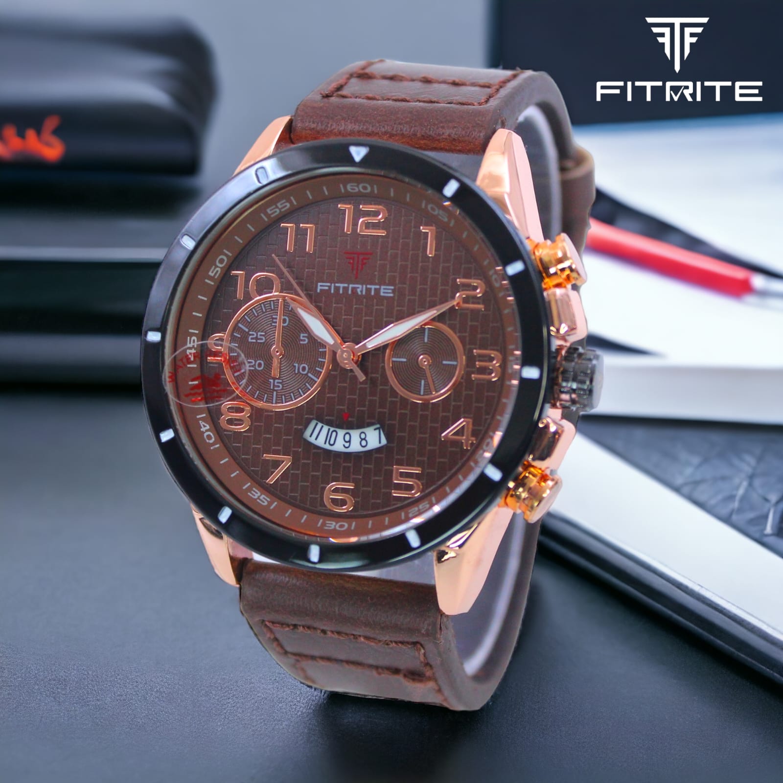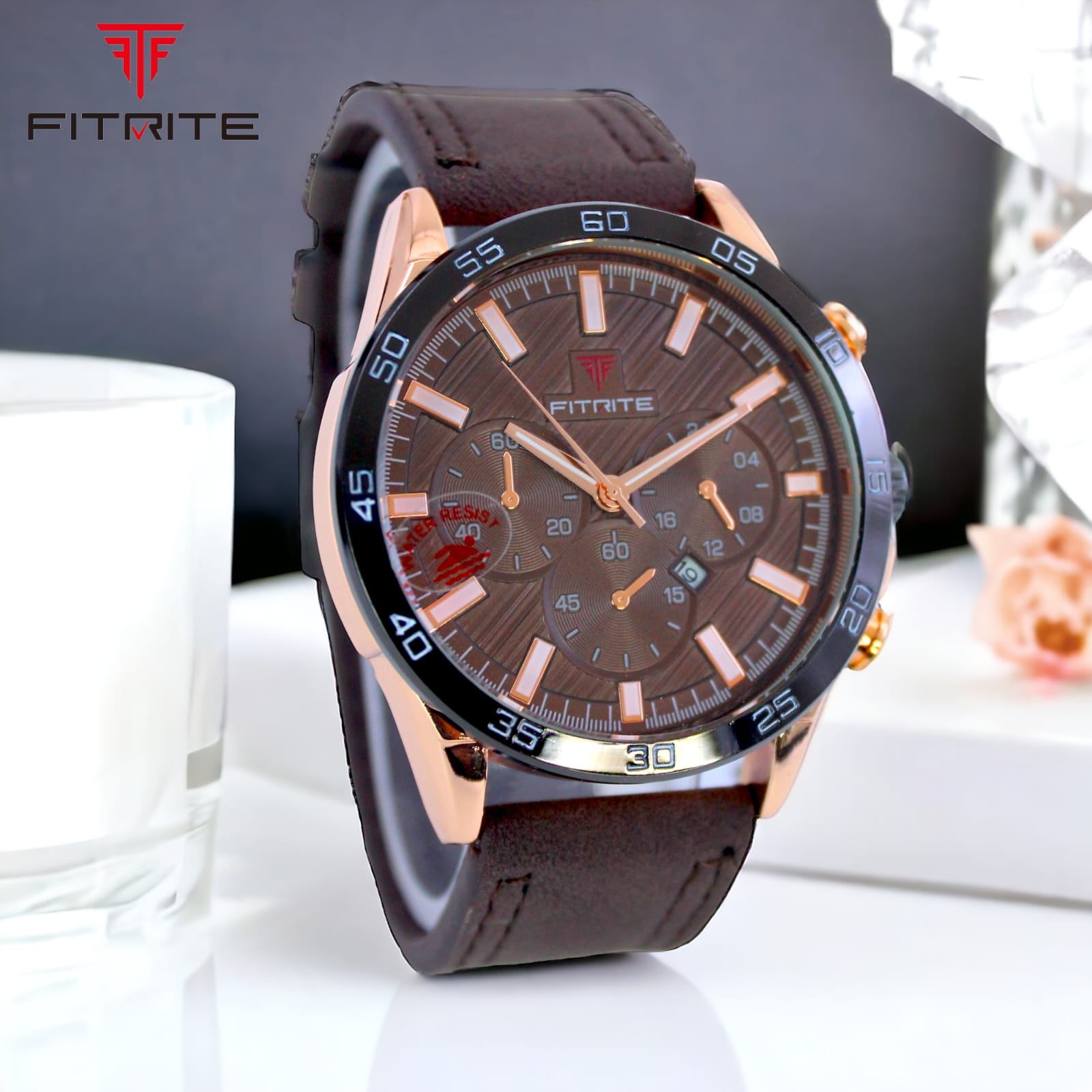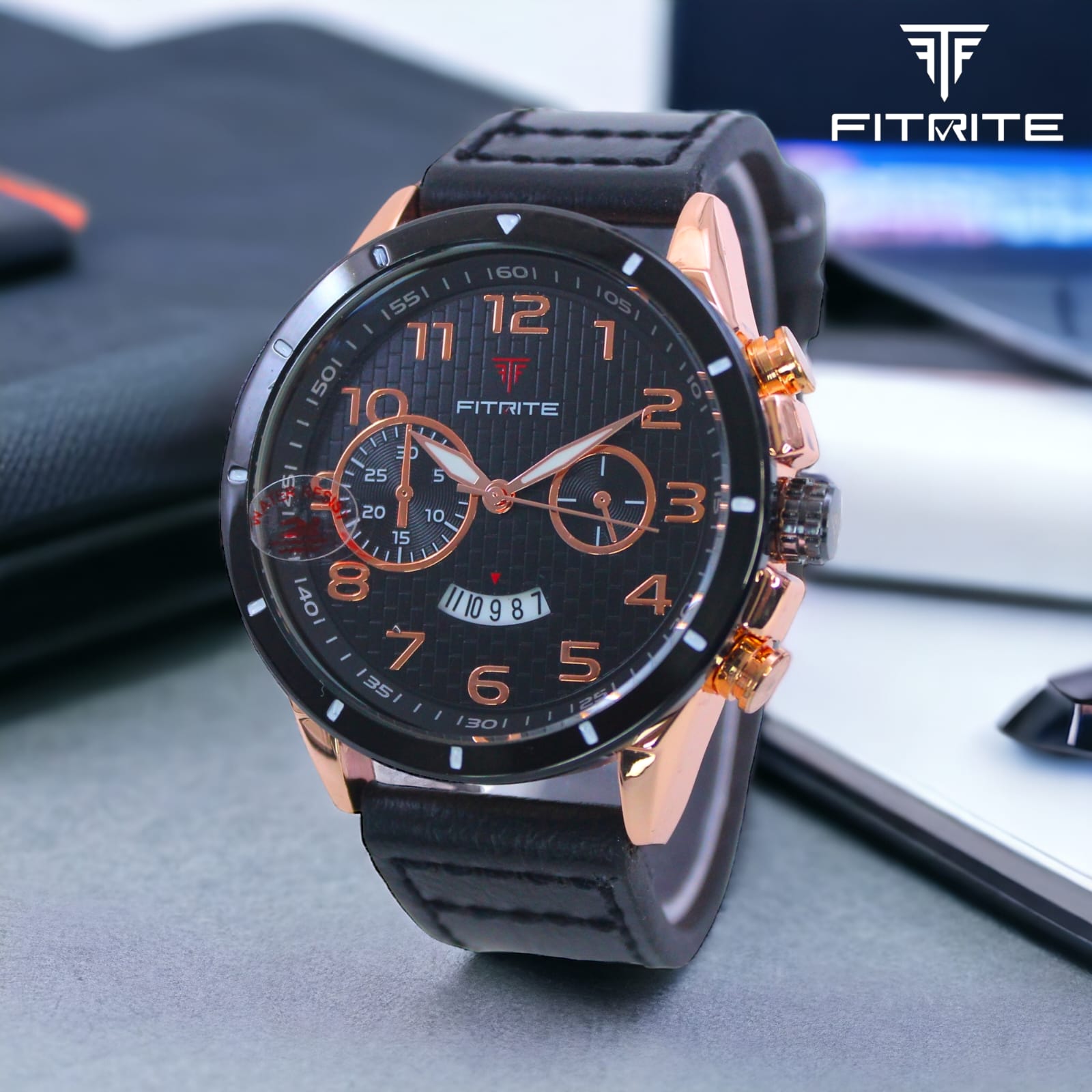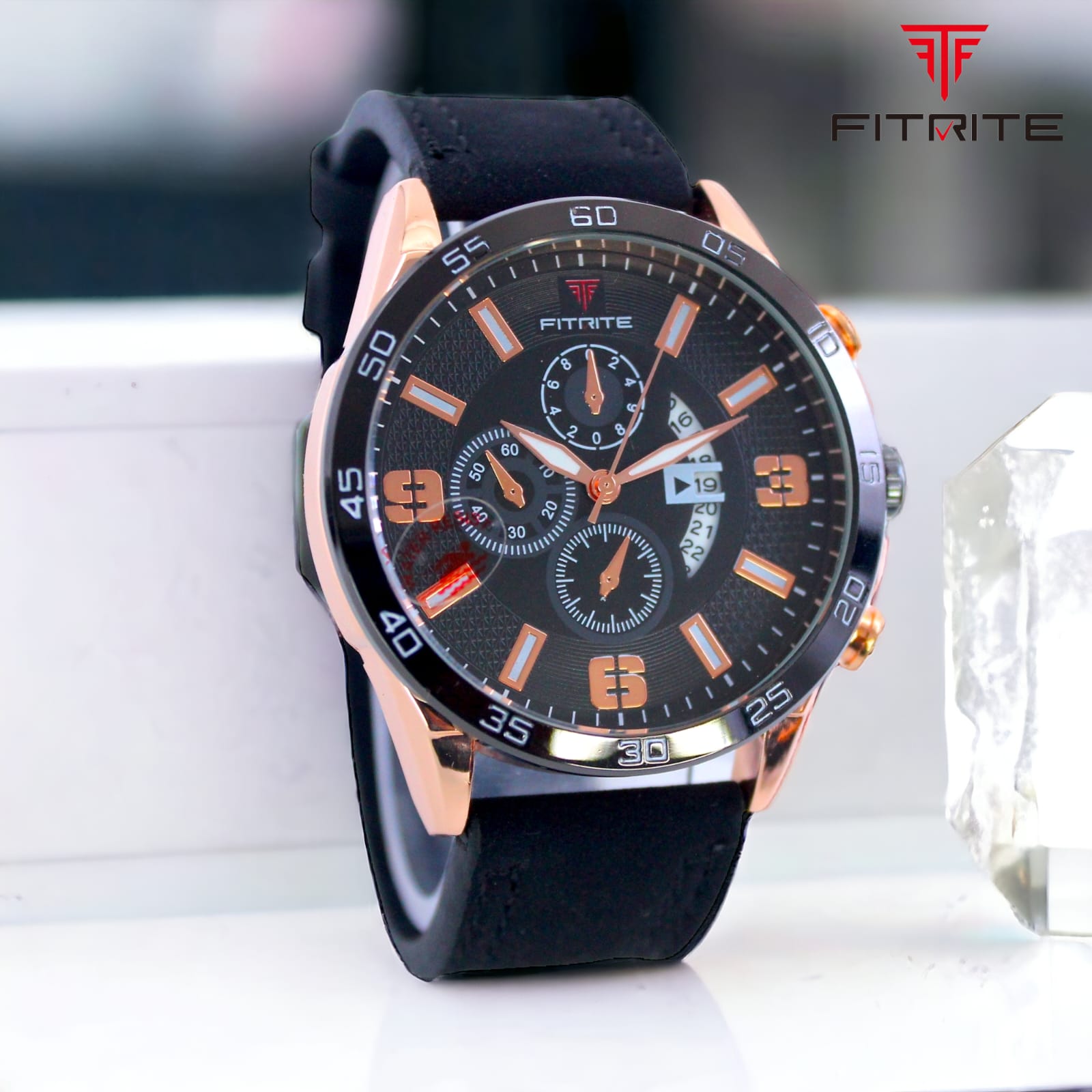 Fitrite ki yeh premium men’s watch style aur performance ka perfect combination hai. Iska black dial rose-gold detailing ke saath classy aur modern look deta hai. Chronograph design ke saath multiple sub-dials aur date display isse aur bhi functional banate hain.