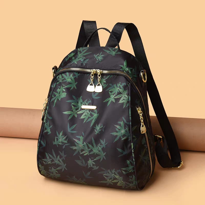 ThisĀ isĀ aĀ chicĀ blackĀ backpack-styleĀ bagĀ withĀ goldenĀ zipperĀ detailsĀ andĀ aĀ matchingĀ goldenĀ accentĀ plateĀ onĀ theĀ front.Ā ItĀ featuresĀ aĀ topĀ handleĀ andĀ adjustableĀ shoulderĀ straps,Ā makingĀ itĀ versatileĀ toĀ carryĀ asĀ aĀ backpackĀ orĀ aĀ shoulderĀ bag.Ā ItĀ looksĀ practicalĀ yetĀ fashionable,Ā perfectĀ forĀ everydayĀ use.
